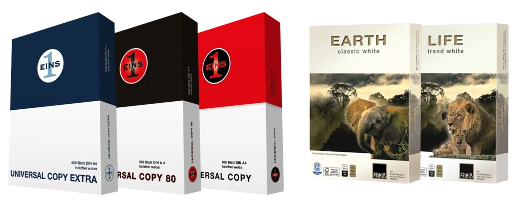 Il gruppo opera con i maggiori produttori internazionali integrati e selezionati secondo i più elevati criteri di sostenibilità e fornisce una gamma di marchi di carta in risme di alta qualità.